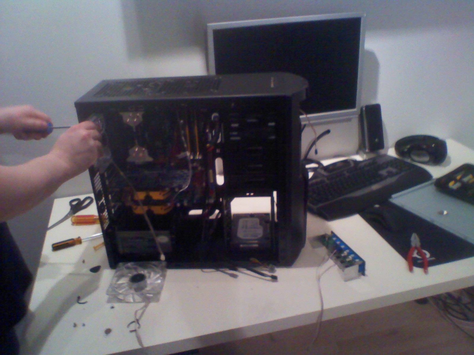 Vifturnar voru "strappaðar" í gamla kassanum þannig að það þyrfti að gera skrúfugötin í vifturnar og það var vesen. Hef aldrei lent í veseni áður með það.