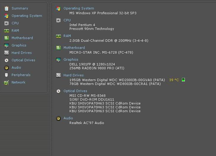 náðu þér í forritið speccy, settu það upp, opnaðu og taktu skjáskot af því, smelltu því á síðu á borð við photobucket og sendu myndina hér inn.